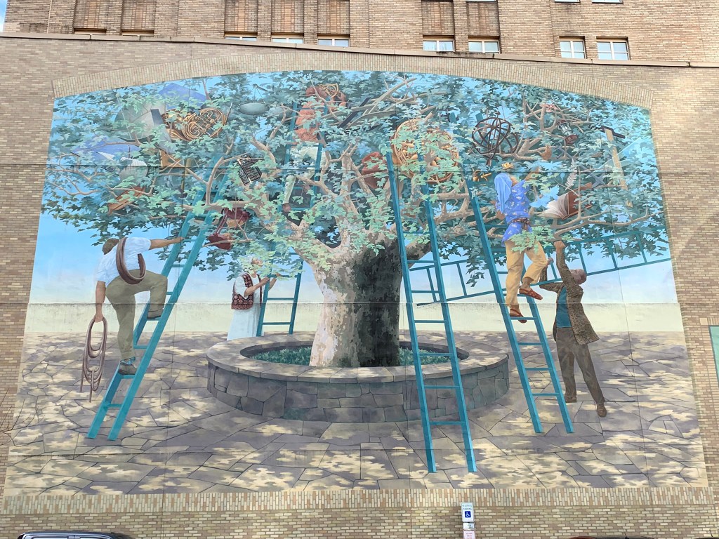 The tree of knowledge was dedicated to honoring Eisenhower fellowships 50 years. This type of art is a mural.